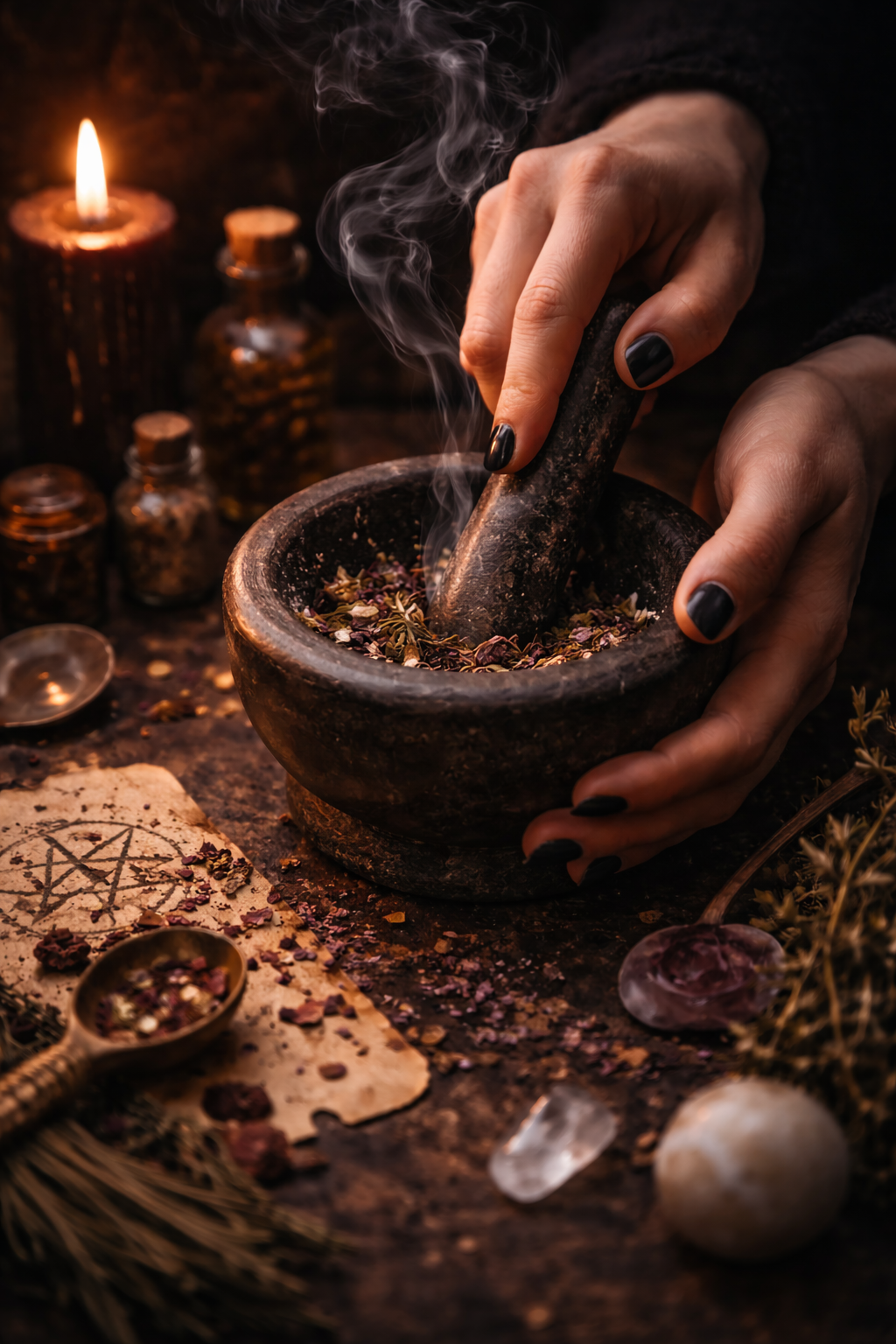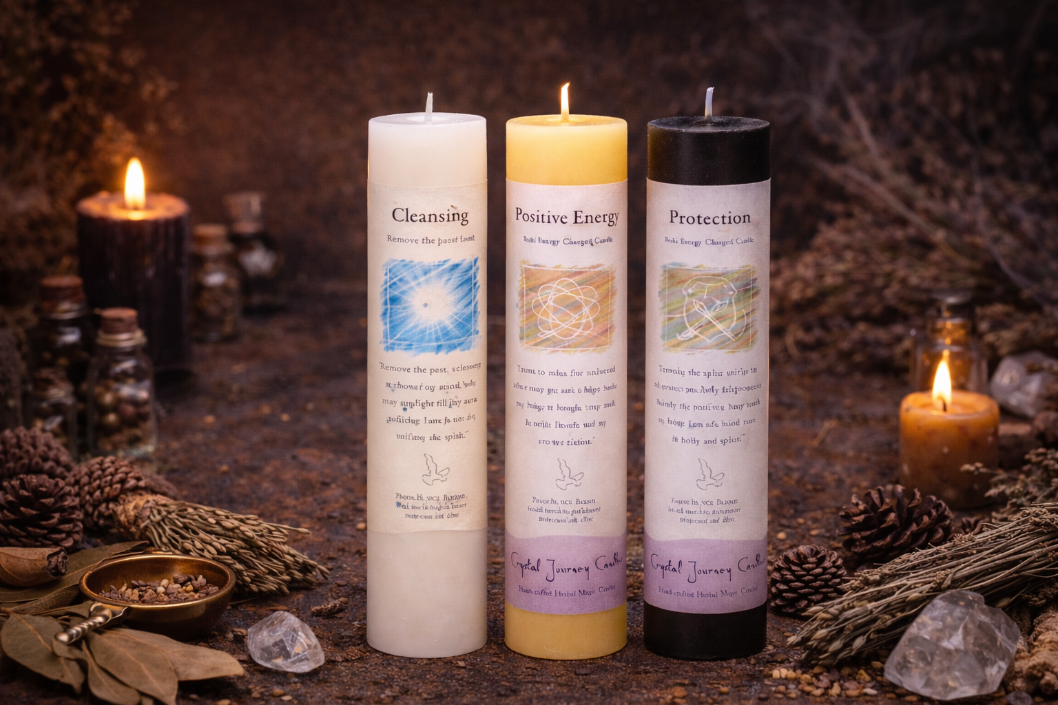 Intentional candles to anchor ritual, prayer, and spellwork, bringing focused energy and atmosphere to sacred space.