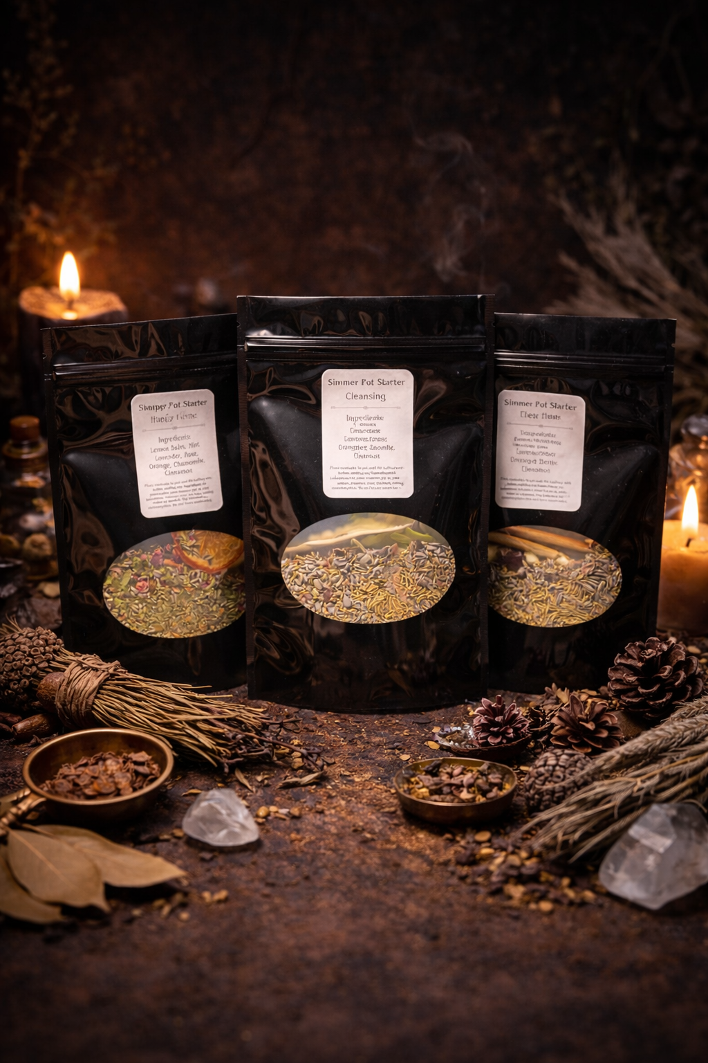 Hand-crafted simmer pot starters blend botanicals, fruit, and intention to gently infuse your space with ritual and atmosphere.